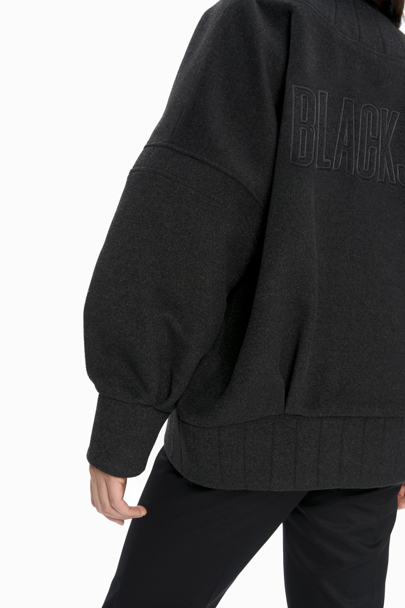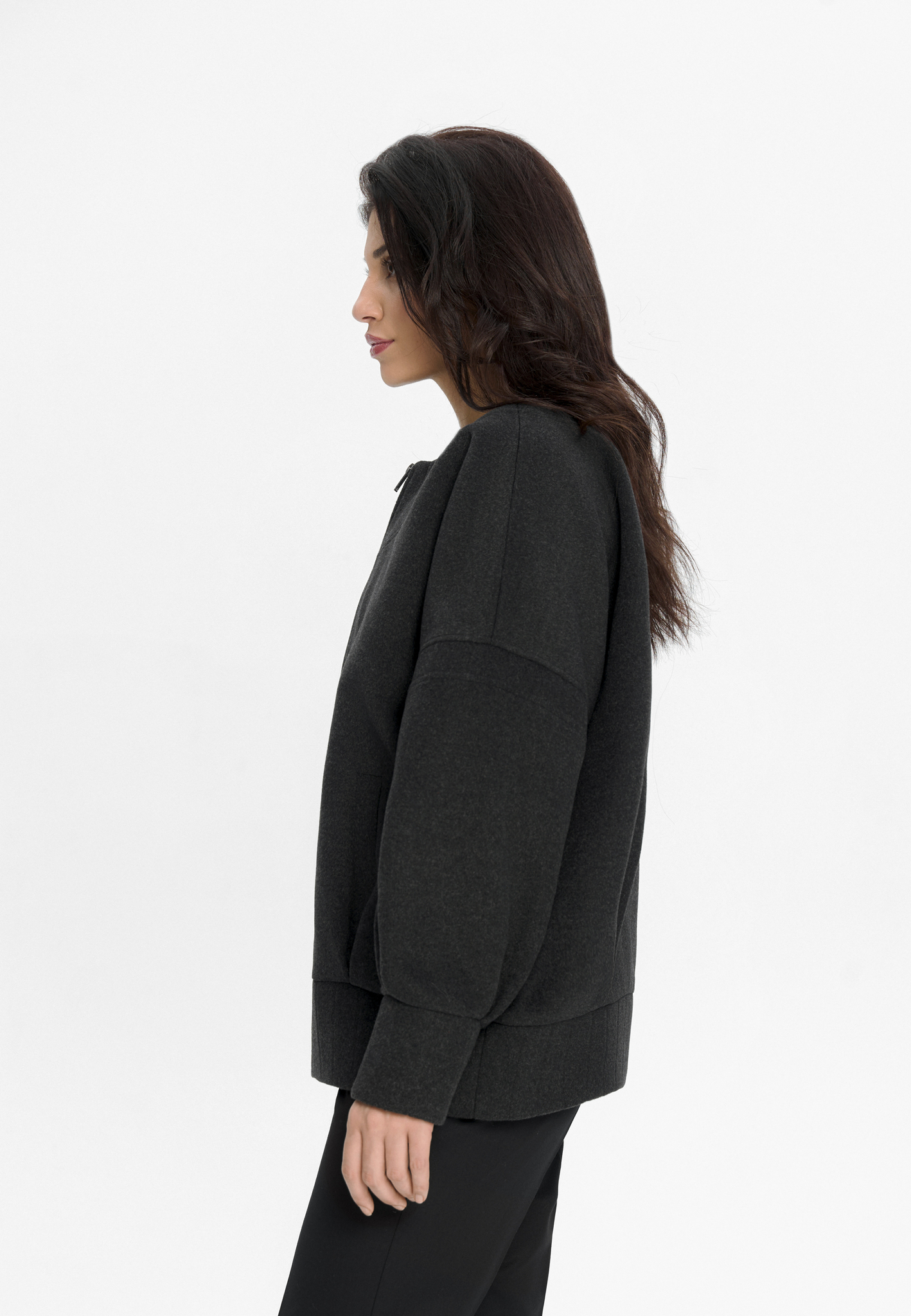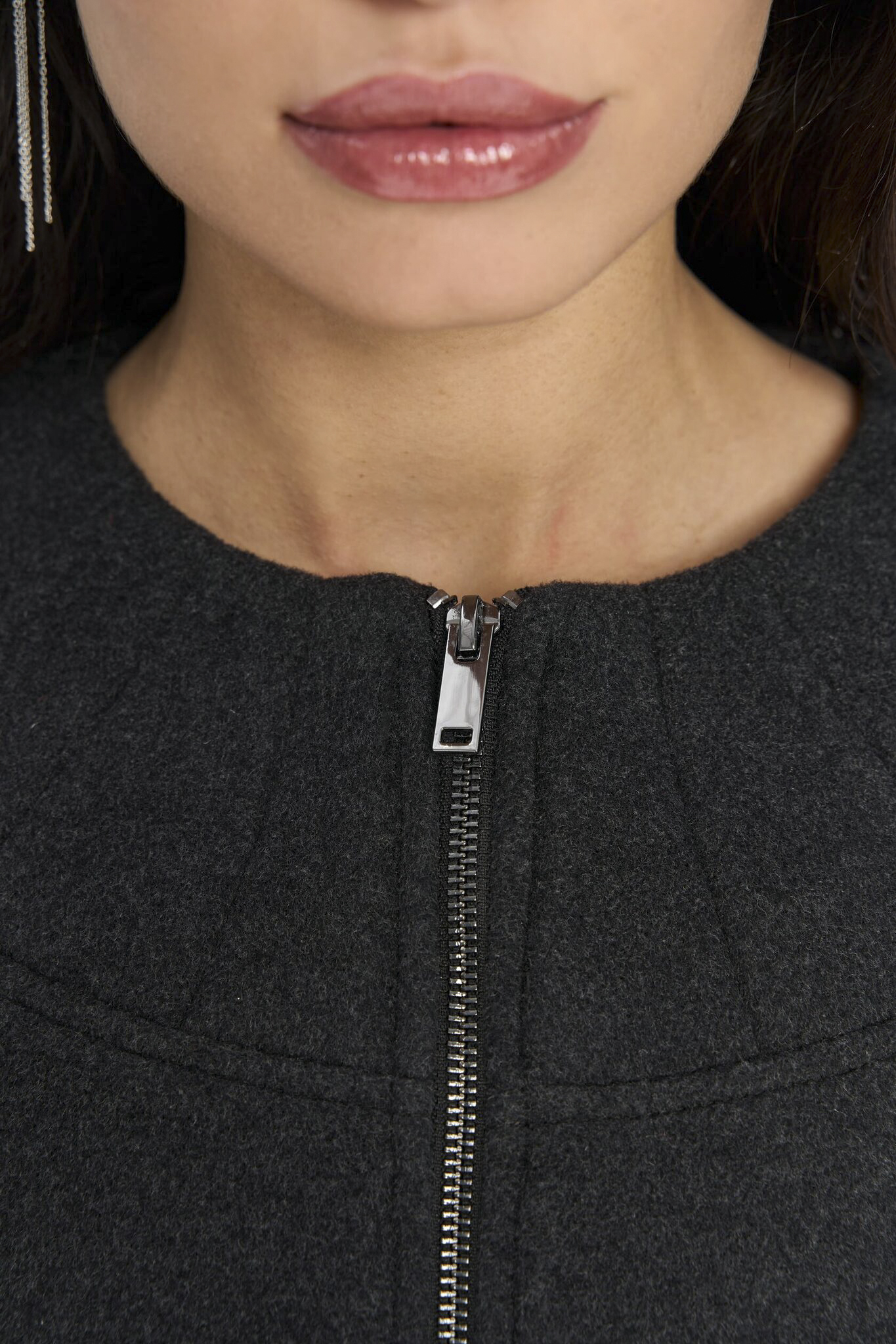 Мягкая шерстяная ткань с плотной текстурой обеспечивает комфорт, а прямой крой и аккуратная молния спереди делают бомбер функциональным и стильным. Он прекрасно сочетается с брюками, джинсами или юбками, позволяя создавать образы в стиле casual или smart-casual.