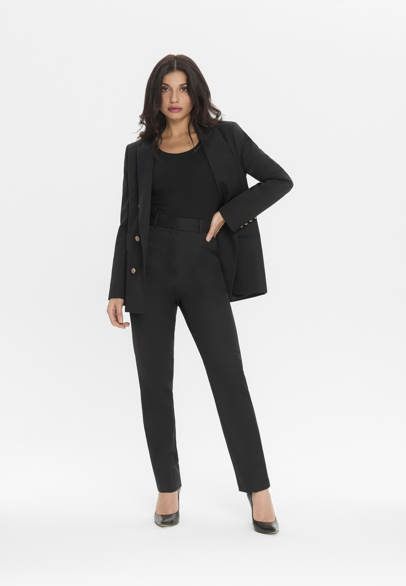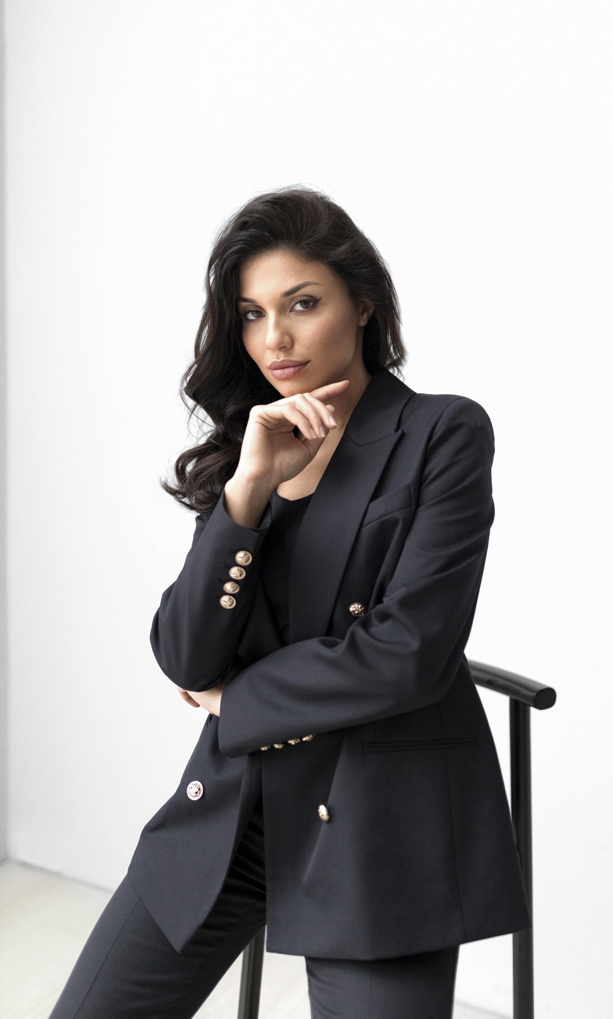 Точная посадка, прорезные карманы и гладкая итальянская ткань, в составе которой натуральная шерсть, делают Emperra не просто вещью, а опорой образа. Он создан для женщин, чья энергия не нуждается в громких акцентах. С брюками жакет превращается в сдержанный, но выразительный костюм, в котором легко быть собой — в кабинете, на встрече, в мягком свете вечера.