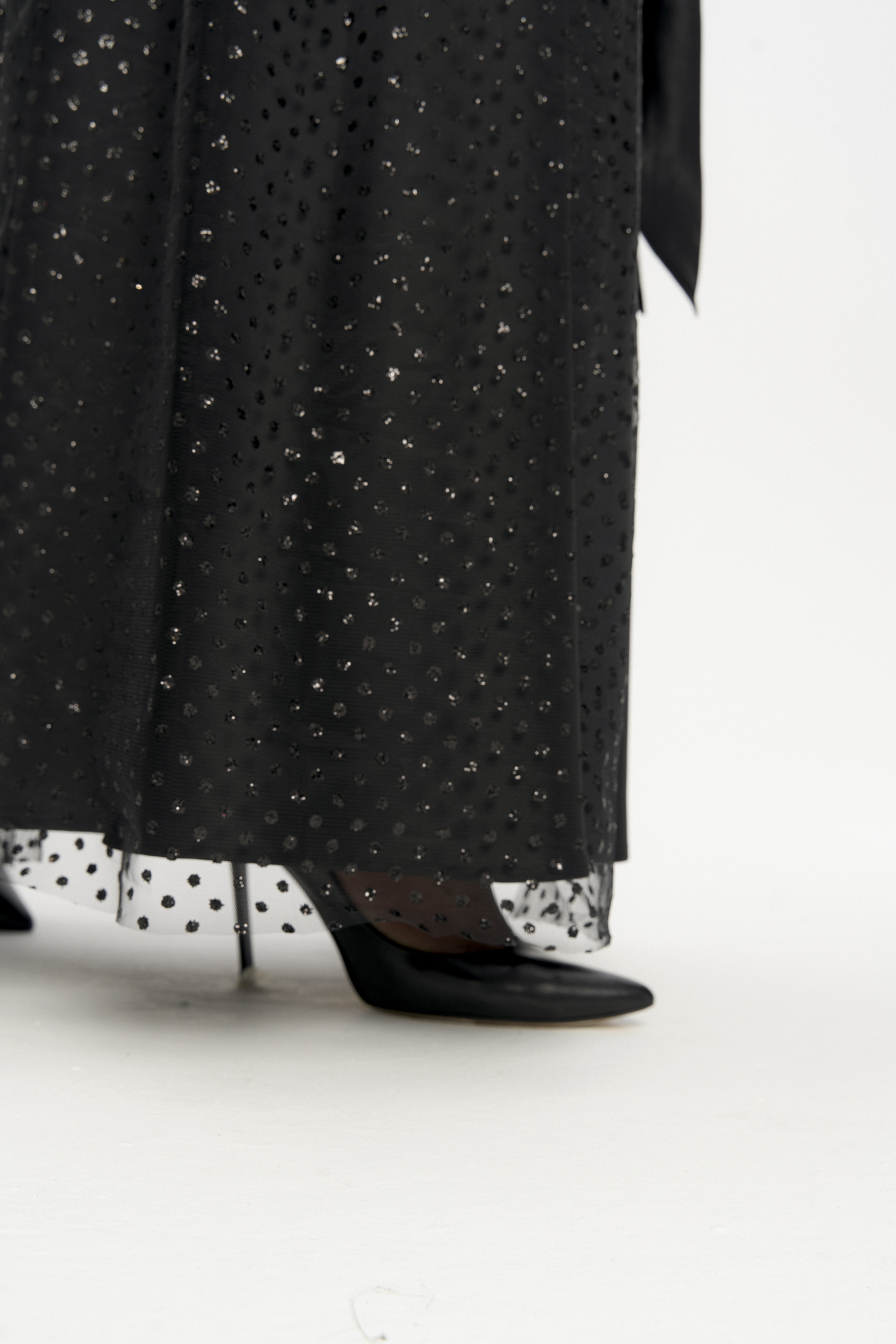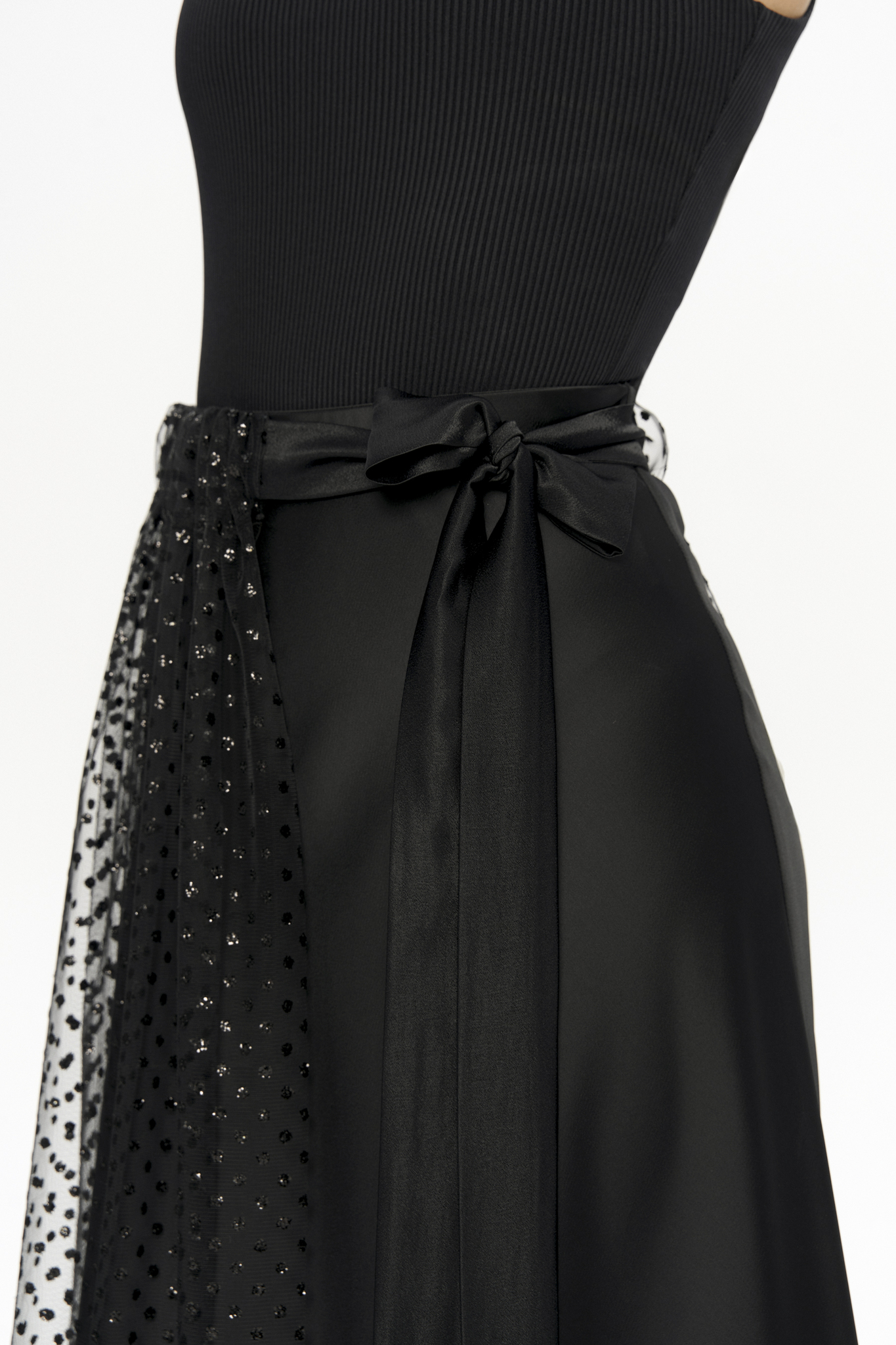 Пояс - сетка Lunara — универсальная модель, которая добавит яркости вашему образу. Полупрозрачная сетка украшена блестящей мушкой, создающей утонченный и необычный акцент. Атласный пояс позволяет завязывать юбку так, как вам хочется, подчеркивая талию и добавляя индивидуальности каждому образу.