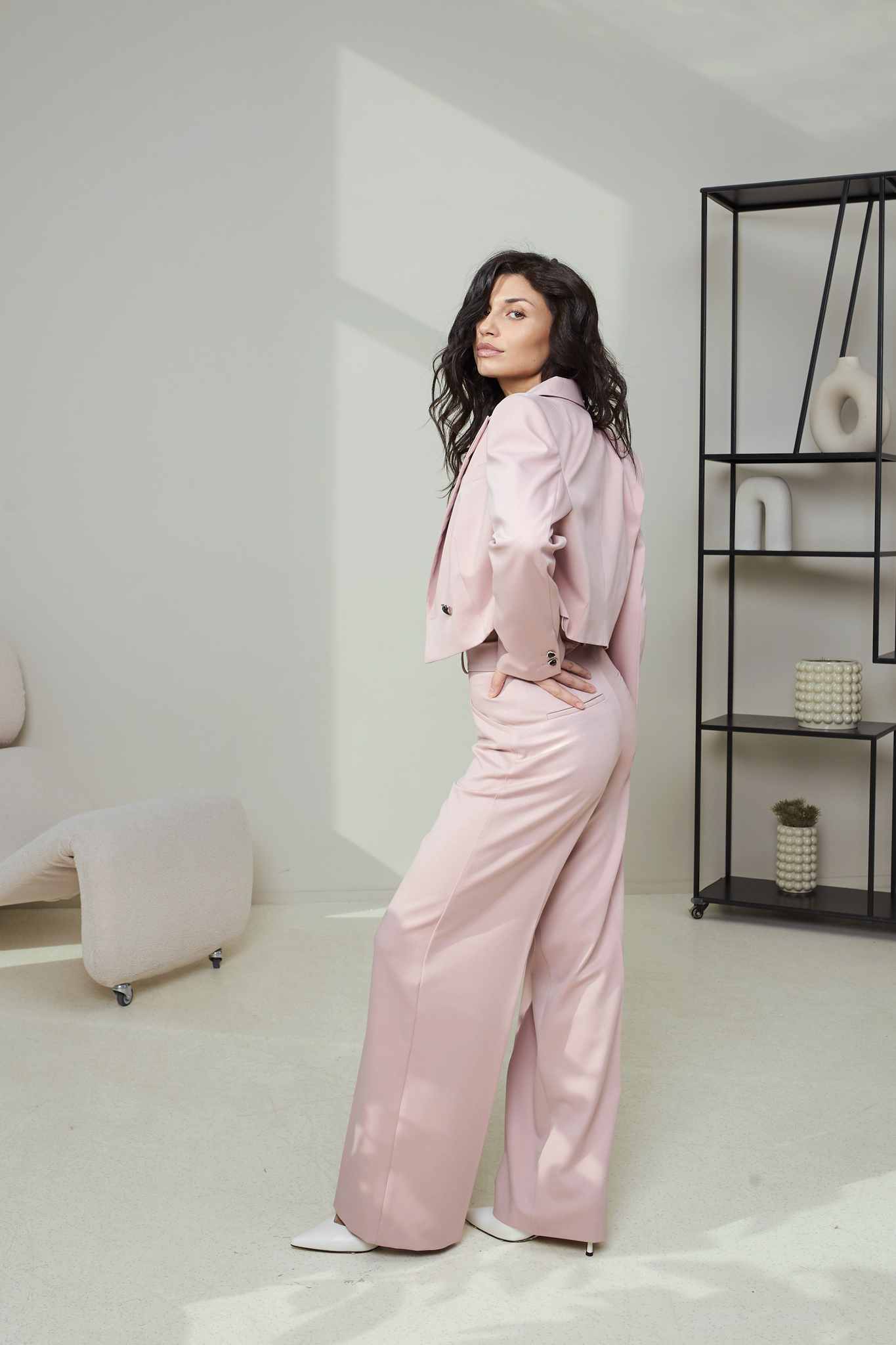 Брюки Avienna — брюки свободного кроя с выразительно завышенной талией в нежно-розовой гамме. Плавно расширяющиеся книзу штанины и чёткая складка от пояса формируют стройный силуэт. Модель выполнена из прочного костюмного полотна с эластичной нитью для безупречного облегания. Брюки создадут выразительный акцент в образе, позволяя оставаться в комфорте на весь день.
