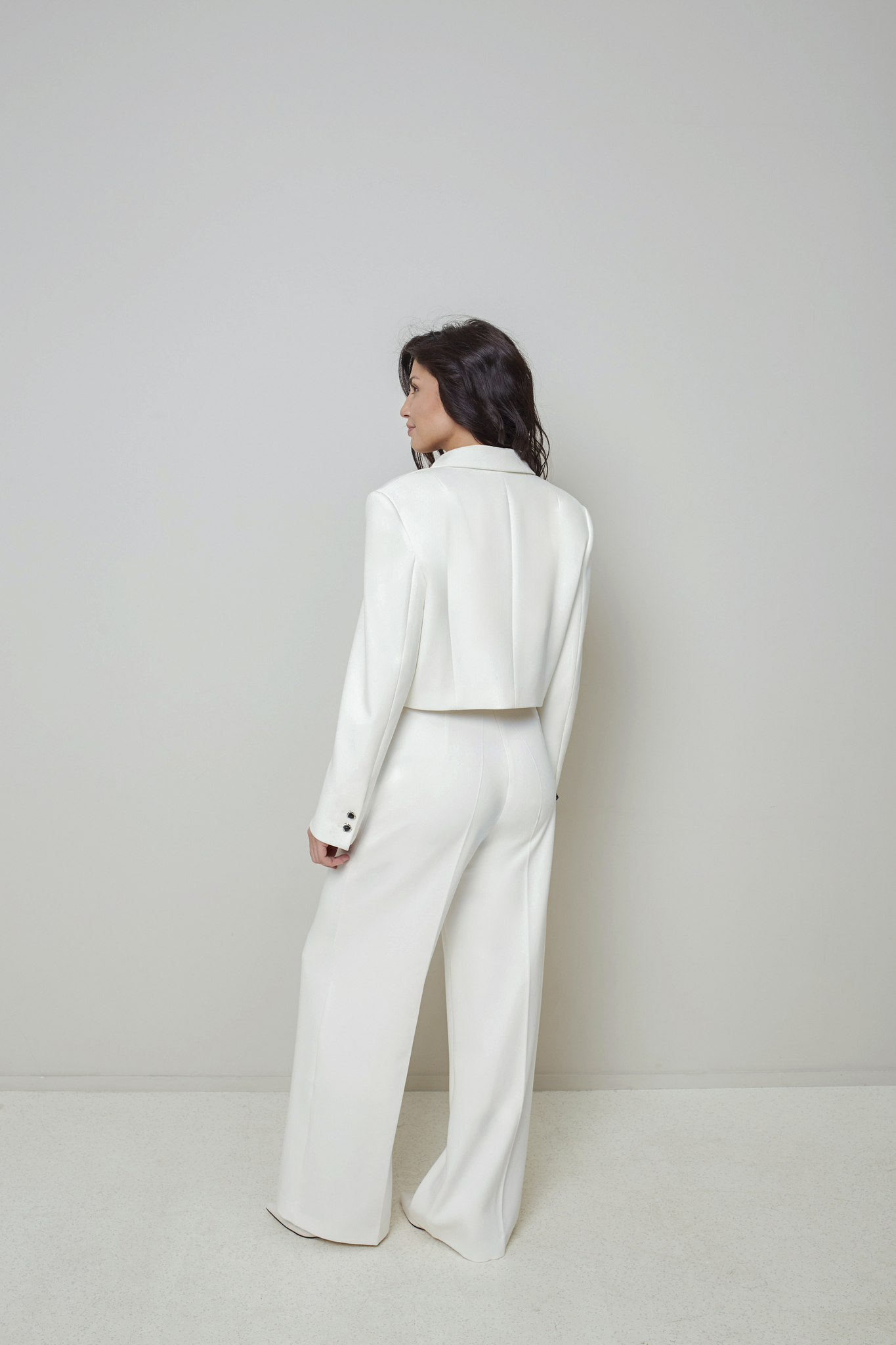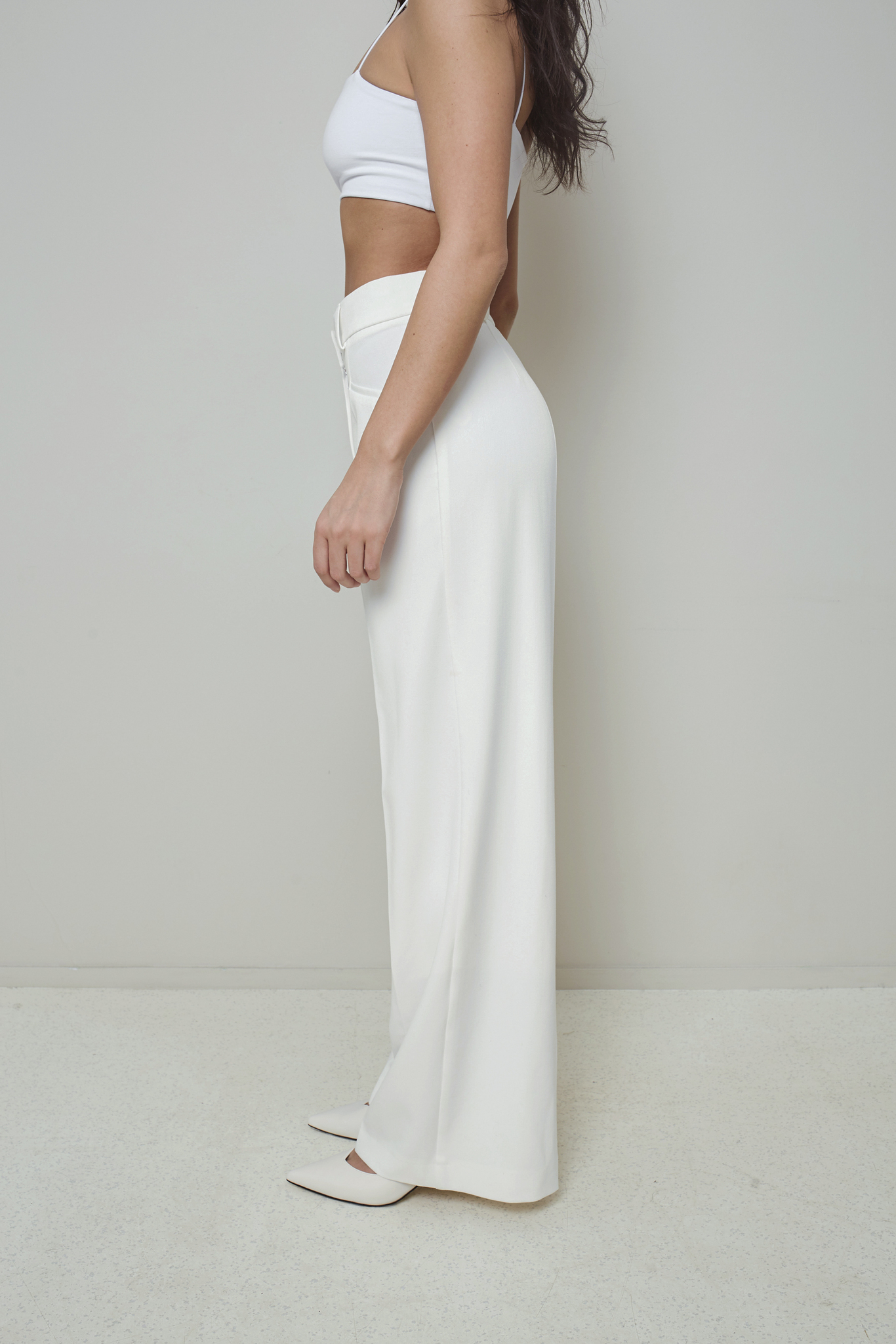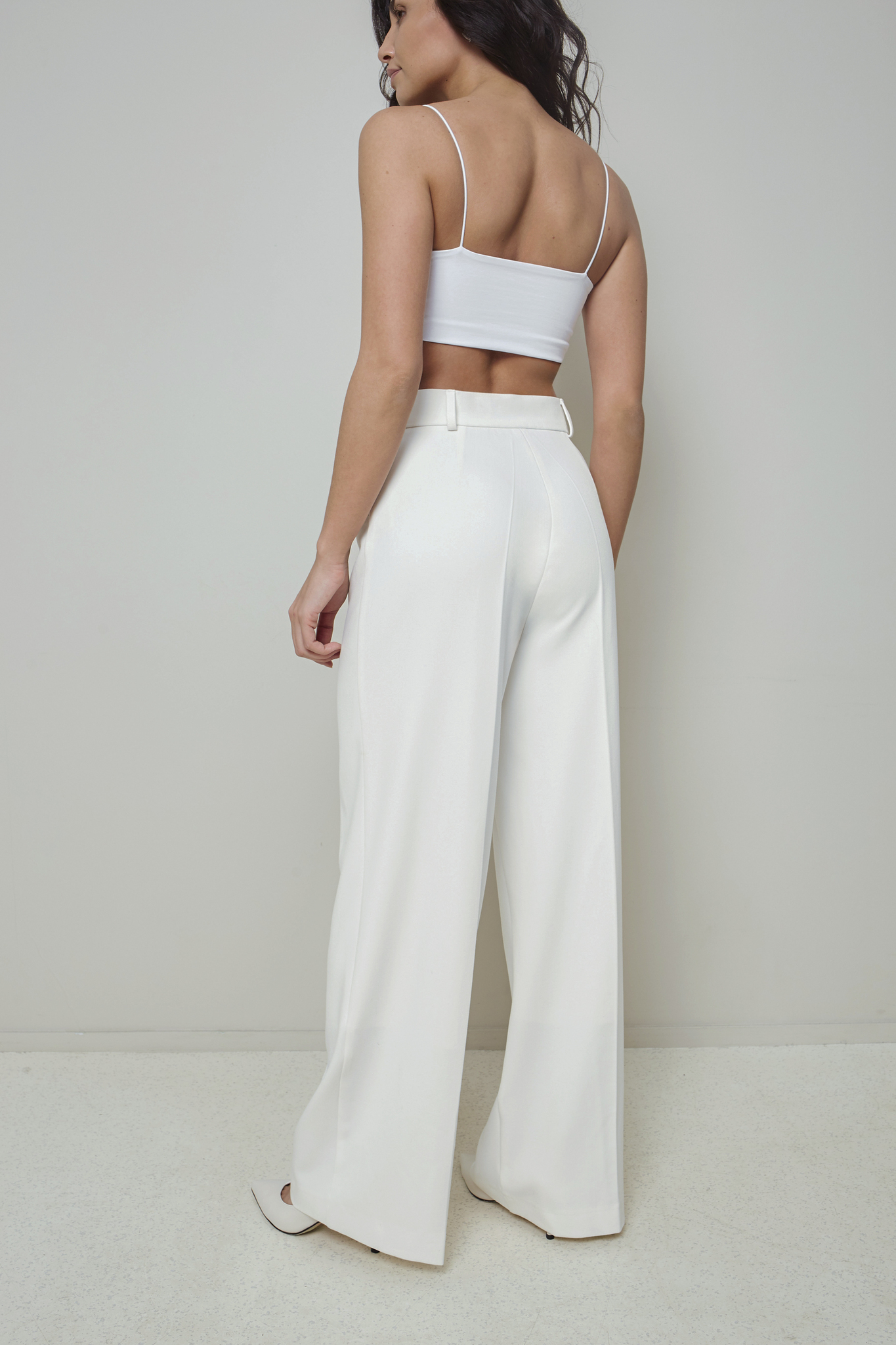 Брюки Biancelle — элегантные брюки в оттенке айвори. Модель с высокой талией и прямыми широкими брюками создаёт визуально удлинённый силуэт, а аккуратные центральные выглаженные стрелки добавляют образу структурированности. Тонкая подкладка в цвет основной ткани надёжно защищает от просвечивания, а и шлёвки на поясе обеспечивают вариативность для стилизации.
